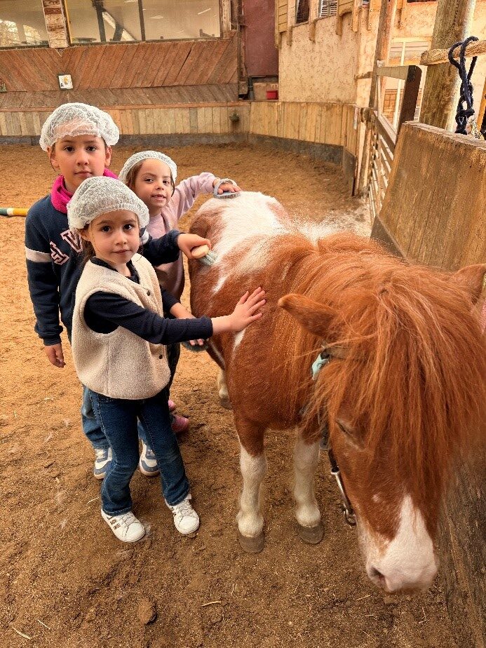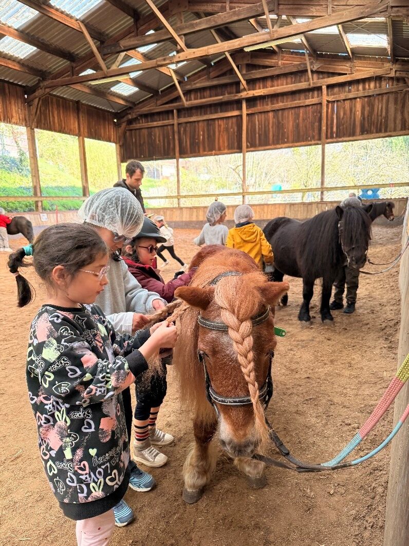 Groseille, Butternut, Pomme d’Api et leurs copains se sont laissé panser, coiffer et monter pour le bonheur des petits cavaliers.